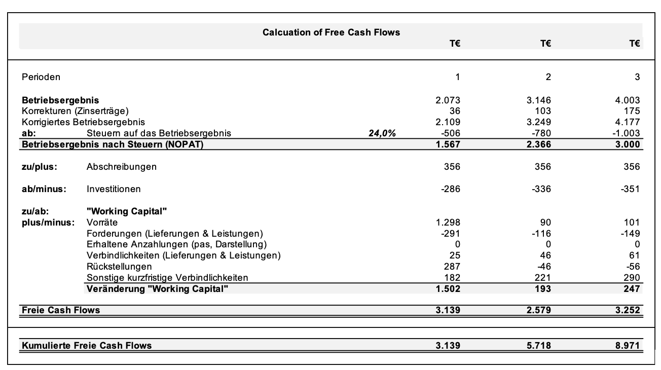 Beispielschema zur Berechnung des Unternehmenswertes mittels Entity Ansatz: